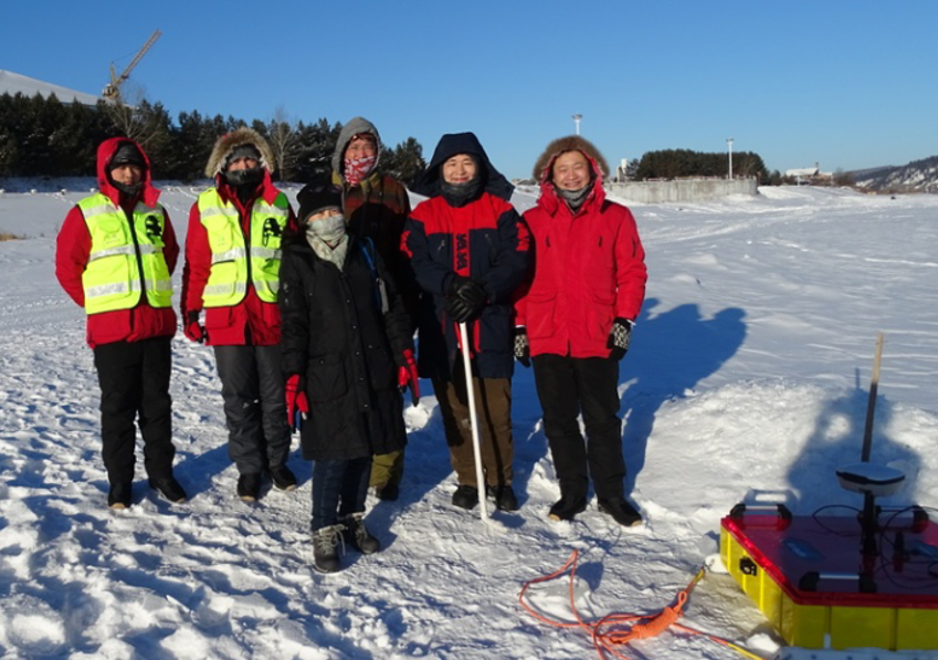 圖6 中國水科院專家和大連中??萍及l(fā)展有限公司工程師在黑龍江冰水探測現(xiàn)場